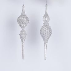 Eurolamp 600-46457 Ακρυλικός Σταλακτίτης, Λευκό Με Γκλίτερ, 2 Σχεδια, 19cm