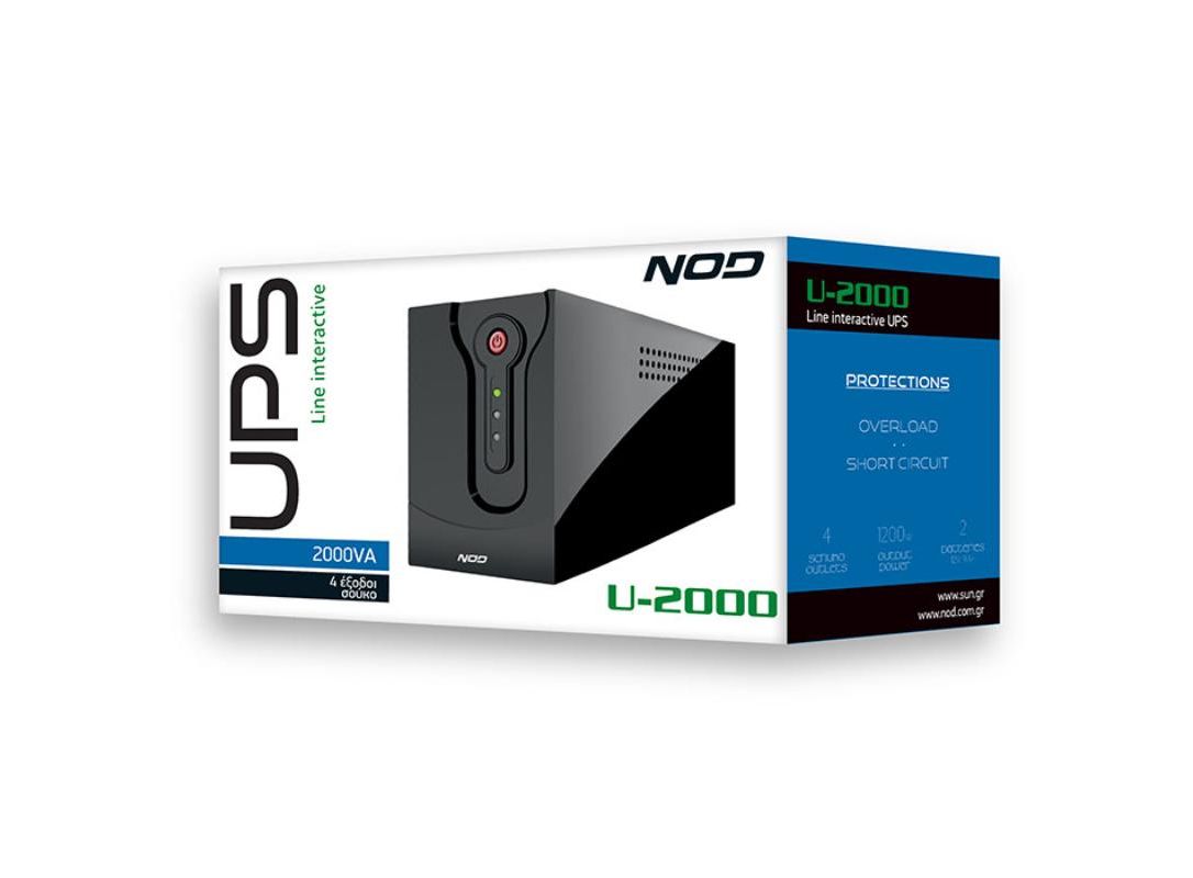 Το UPS NOD διαθέτει ισχύ 2000VA (1200W) είναι εξοπλισμένο με 2 μπαταρίες NOD LAB 12V 9AH, 4 πρίζες σούκο και διαθέτει ενδεικτικές λυχνίες λειτουργίας και χαμηλής μπαταρίας LED. Επίσης διαθέτει ηχητική ειδοποίηση σε περίπτωση χαμηλής μπαταρίας.