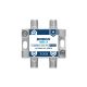 Διακλαδωτής "All-band" τηλεοπτικού σηματος με φις τύπου F θηλυκά και χυτό, μονοκόμματο, επινικελωμένο κέλυφος ψευδαργύρου. Είναι σχεδιασμένο και κατασκευασμένο με υψηλά πρότυπα απόδοσης, προσφέροντας χαμηλές απώλειες διέλευσης, υψηλή απομόνωση μεταξύ των εξόδων και μπορεί να χρησιμοποιηθεί σε όλες τις τηλεοπτικές εγκαταστάσεις τόσο με Επίγειο Ψηφιακό, όσο και με Δορυφορικό σήμα (σύμφωνα με τις επιλογές του τεχνικού της εγκατάστασης). Διαθέτει 1 είσοδο και 3 εξόδους για διαμοιρασμό σήματος απο το δίκτυο ομοαξονικού καλωδίου, μαζί με διέλευση ρεύματος DC απο όλες τις εξόδους προς την είσοδο, διευκολύνοντας τον τεχνικό σε εγκαταστάσεις δορυφορικής τηλεόρασης και επίσης όταν χρειάζεται πέρασμα ρεύματος DC προς κεραίες, για παράδειγμα, με ενεργό δίπολο ή προς ενισχυτές ιστού.