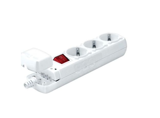 Λευκό πολύπριζο 3 θέσεων χωρίς καλώδιο με διακόπτη on/off.