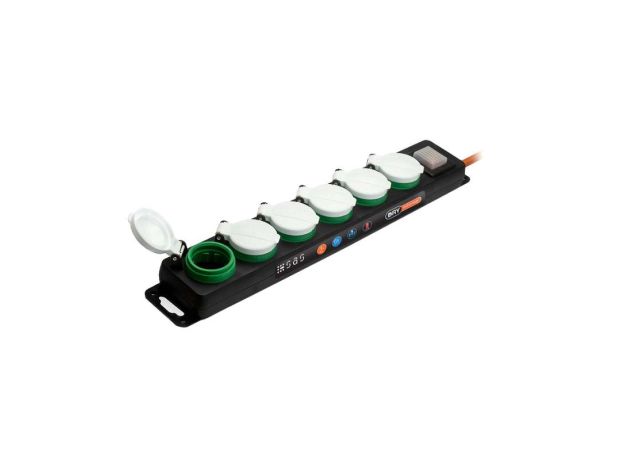 Dry technology Πολύπριζο 6 θέσεων Μαύρο με διακόπτη, στεγανότητα IP 44 και 5m μήκος καλωδίου. Ιδανικό για χρήση σε εξωτερικούς χώρους!