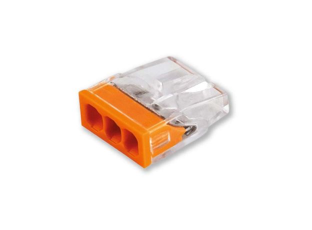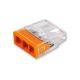 Μίνι κλέμα ταχείας σύνδεσης πορτοκαλί 3 αγωγών για μονόκλωνα καλώδια.