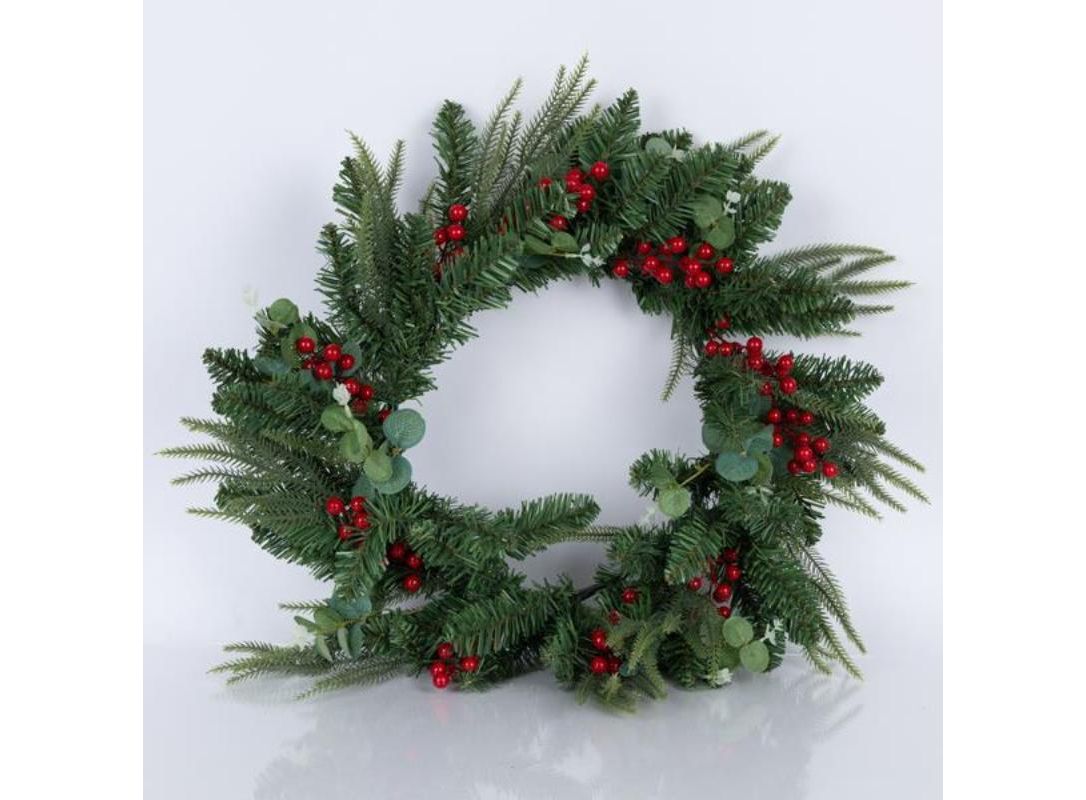 Eurolamp 600-30633 Στεφάνι με Berries και Πράσινα Φύλλα