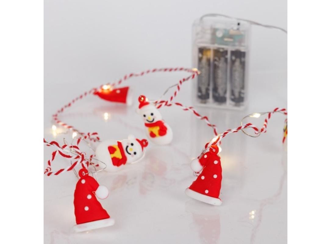 ΣΕΙΡΑ, 20 MINI LED, ΣΚΟΥΦΟΣ & ΧΙΟΝΑΝΘΡΩΠΟΣ, ΜΠΑΤΑΡΙΑΣ 3xAA, ΧΡΟΝΟΔΙΑΚΟΠΤΗ, ΚΟΚΚΙΝΟ & ΛΕΥΚΟ ΧΑΛΚΙΝΟ ΚΑΛΩΔΙΟ, ΘΕΡΜΟ ΛΕΥΚΟ LED ΑΝΑ 10cm, ΠΡΟΕΚΤΑΣΗ ΠΑΡΟΧΗΣ 30cm, IP20