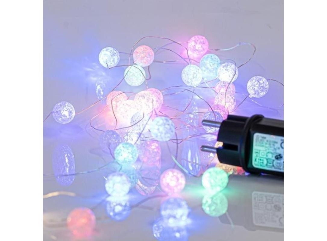 ΣΕΙΡΑ, 100 MINI LED, ΑΚΡΥΛΙΚΕΣ ΜΠΑΛΙΤΣΕΣ Φ2cm, 4.5V ΜΕΤΑΣΧΗΜΑΤΙΣΤΗ, ΑΣΗΜΙ ΧΑΛΚΙΝΟ ΚΑΛΩΔΙΟ, OPAL ΧΡΩΜΑΤΙΣΤΟ LED ΑΝΑ 5cm, ΠΡΟΕΚΤΑΣΗ ΠΑΡΟΧΗΣ 3m, IP44