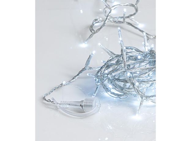200Led Λαμπάκια Με Επέκταση Και Μετασχηματιστή Ip44 ,Διάφανο Καλώδιο/Λευκό Λαμπάκι , (5cm Απόσταση) 10 Μέτρα , (Kelvin: 6.000 - 10.000)