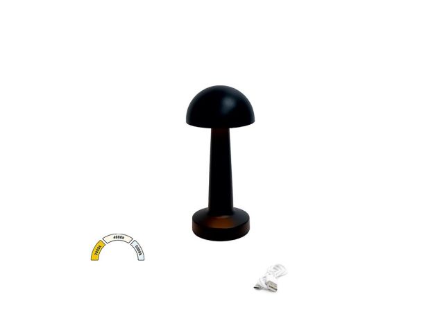 Adeleq LED Πορτατίφ CCT Επαναφορτιζόμενο 3W Μινι Dimmable Μανιτάρι Μαύρο 5-0831