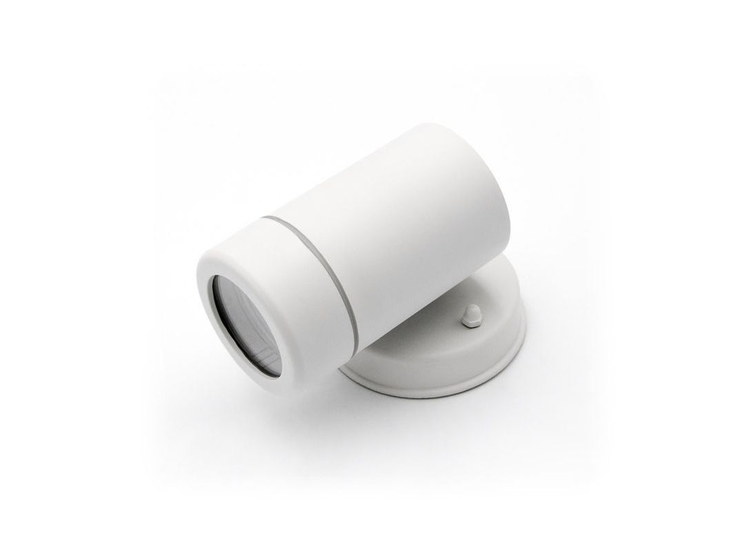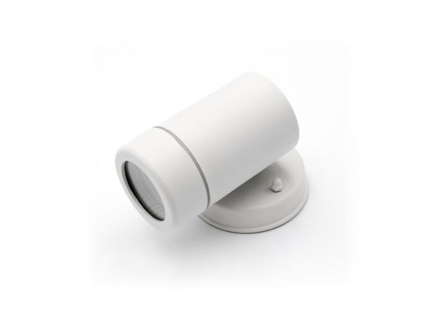 Φωτιστικό Πλαστικό Επίτοιχο Στρογγυλό Μονής Κατεύθυνσης Λευκό Με Ντουί GU10 Στεγανό IP-65 Φ:60mm L:120mm h:87mm