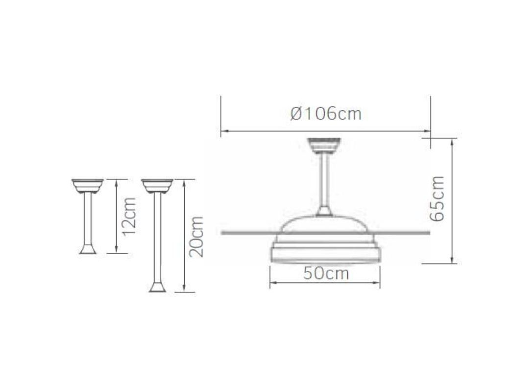 Ανεμιστήρας οροφής της εταιρείας Lineme, με ισχύ 30 Watt. Η διάμετρος του είναι 106 εκατοστά και μπορεί να καλύψει χώρους έως και 15 m².
